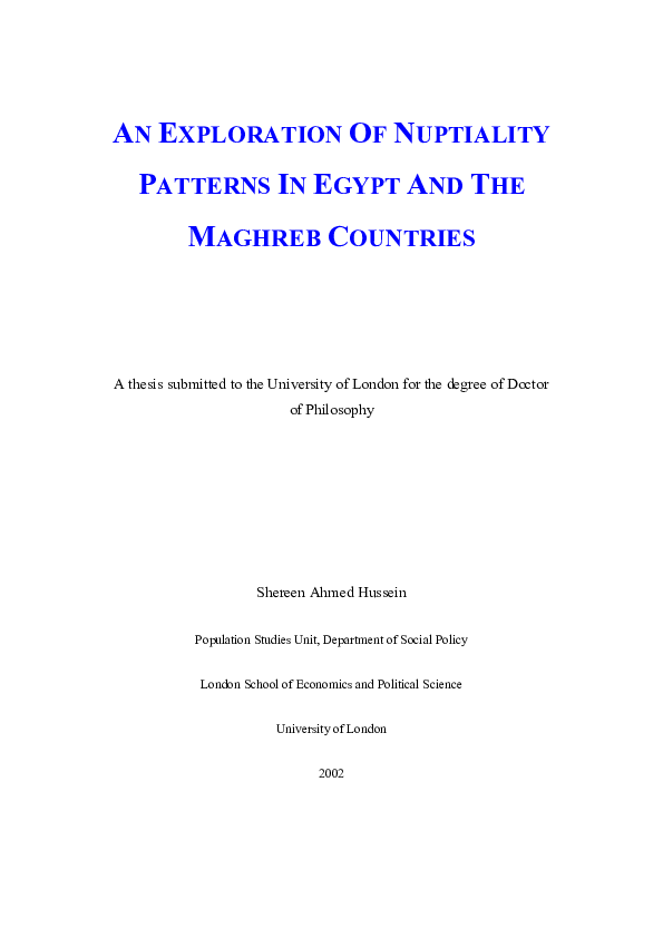 Pdf An Exploration Of Nuptiality Patterns In Egypt And The Maghreb Countries Shereen Hussein Academia Edu